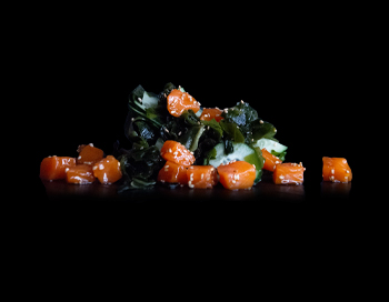 ALGAS WAKAME Y PEPINO ALIÑADO ACOMPAÑADO DE SALMÓN MARINADO